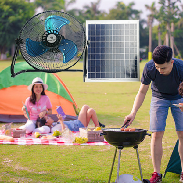 Bộ quạt thích hợp để sử dụng khi đi du lịch, tổ chức tiệc ngoài trời, đồng thời là pháp cho những ngày nắng nóng bị cúp điện.