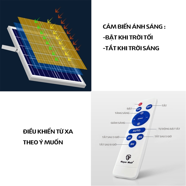 Tính năng đèn: Cảm biết ánh sáng / Điều khiển từ xa